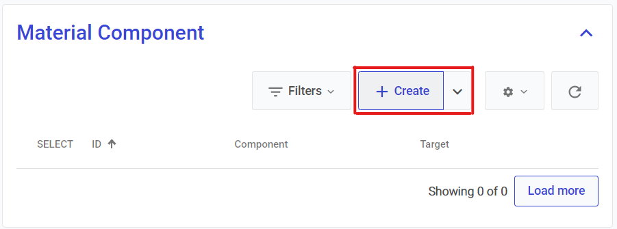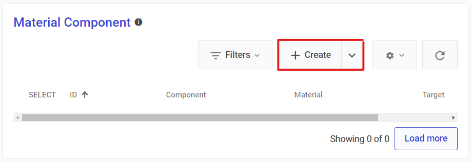 Scroll down to the **Material Component** tab, click **Create.**