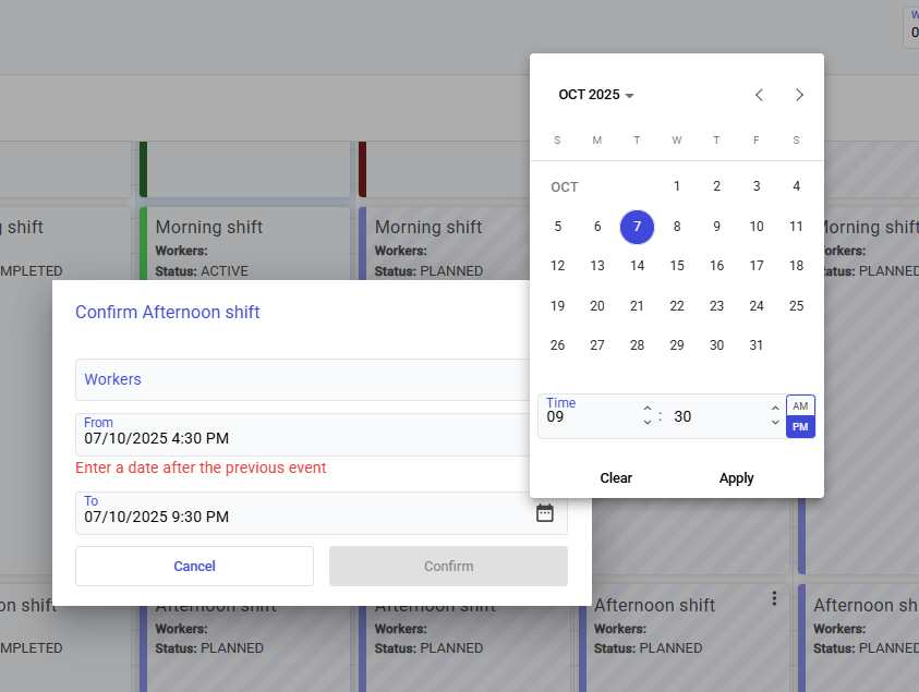 * PLANNED or CONFIRMED shifts automatically become ACTIVE when their start time is reached