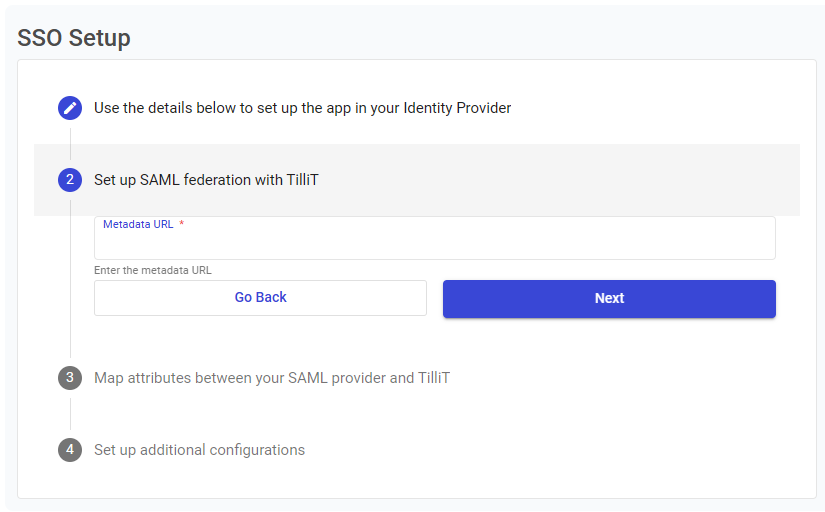 Finally, copy the App Federation Metadata URL and paste that into the second step of the setup form in TilliT DO.