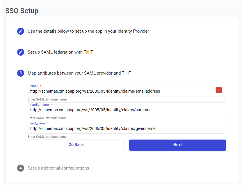 Commonly known as Single Sign-On (SSO), you can connect to TilliT with any service using the SAML standard.