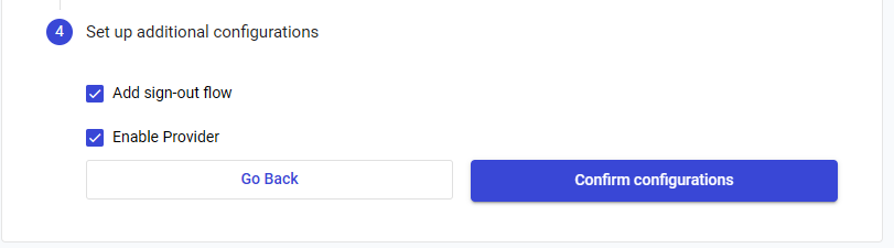 Finally choose your additional configurations, it is crucial to have the provider enabled