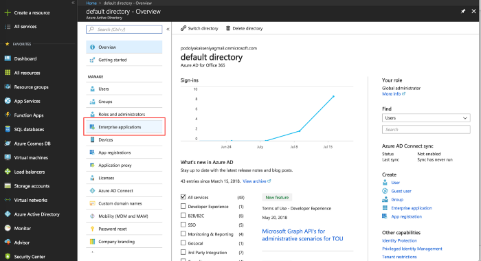 Open Azure Portal https://portal.azure.com/, on the right side menu choose “Azure Active Directory”.