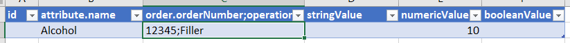 order.orderNumber;operation - the combined order number and attribute, separated by a semicolon. For example, if you have Order 12345 with Operation Filler, this value will be 12345;Filler.
