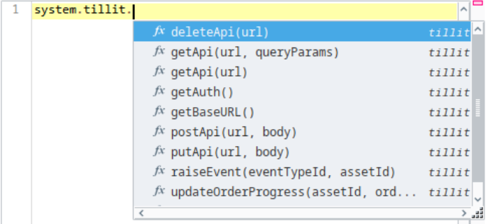 The TilliT Ignition Module also enables passing information to TilliT via scripts. To see what calls are available in the script write system.tillit. and a variety of methods will appear.